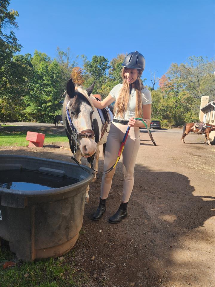 I grew up working with my mom on horse farms as a stable hand. I also rode horseback as a girl through teenager, and recently started up lessons again. Very passionate about horses and very comfortable cleaning and handling barn animals.
